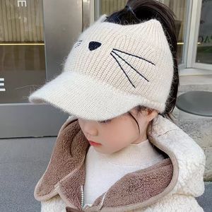 儿童帽子女秋冬季空顶毛线鸭舌帽女童百搭可爱宝宝加厚保暖针织帽