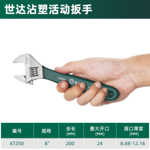 【直播专享】世达沾塑活扳手小型开口小号4/6/8/10/12寸碳钢加厚