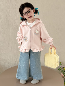 女童外套春秋季2025新款小女孩宝宝秋款小童连帽上衣儿童秋装衣服