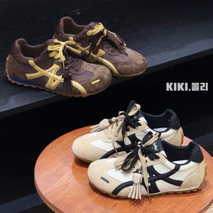真皮阿甘鞋女2025秋季新款圆头厚底拼色防滑舒适休闲运动板鞋潮款