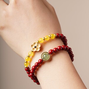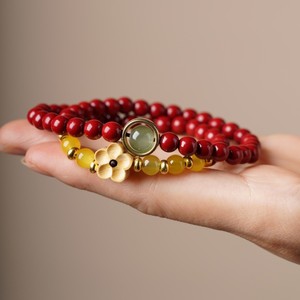天然朱砂古法金梅花座双圈款手链DIY原创简约风小众设计款手串批