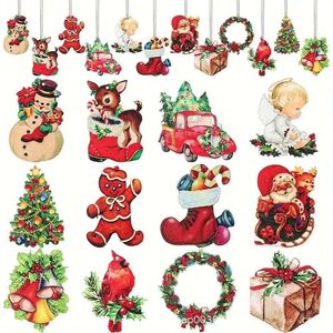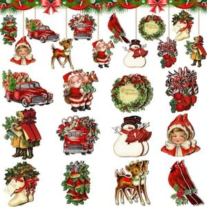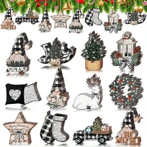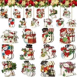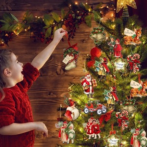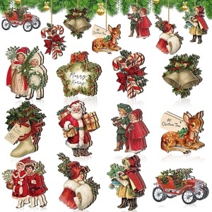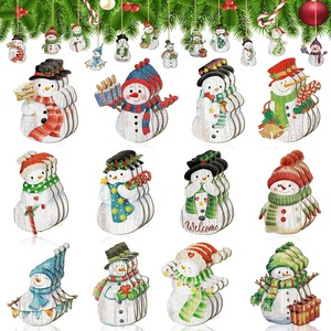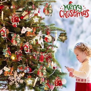36件圣诞节木制雪人圣诞老人雪花麋鹿圣诞装饰挂件圣诞树装饰品