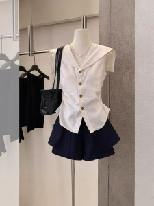 【工厂现货】海军领亚麻无袖马甲衬衫女夏季减龄收腰显瘦小衫上衣