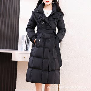 羽绒服女冬季加长款洋气收腰显瘦2025新款加厚过膝保暖白鸭绒外套