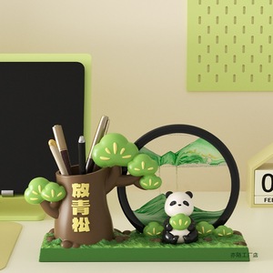 放轻松熊猫笔筒放青松流沙画摆件谢师礼毕业礼物送老师的实用礼物