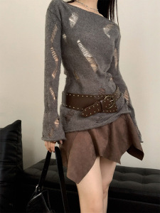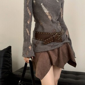 复古百搭y2k辣妹废土风棕色腰封古着感嘻哈小众设计感重工宽腰带