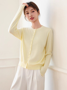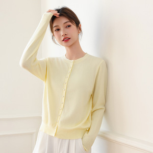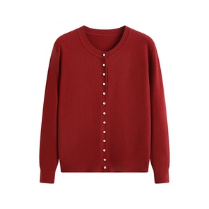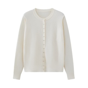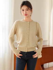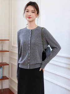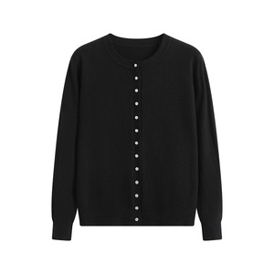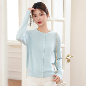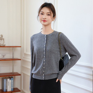 春秋时尚圆领珍珠扣开衫超柔亲肤针织衫百搭外套长袖宽松韩版上衣