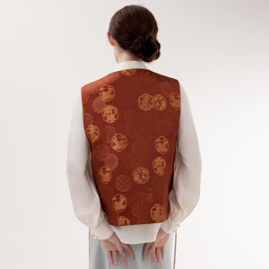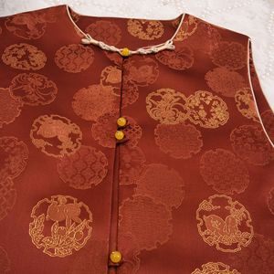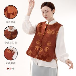 南油秋季新款国风提花马甲新中式复古盘扣流苏对襟立领唐装马夹女