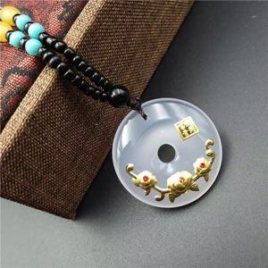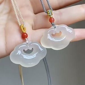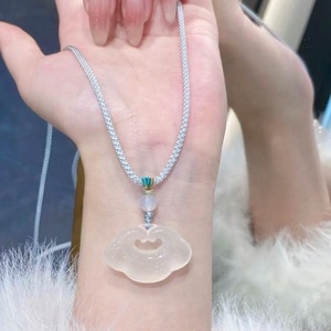天然白玉髓祥云如意锁吊坠玛瑙平安锁玉石玉器挂件吊坠直播货源