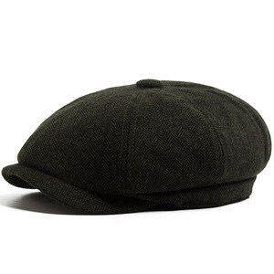 外贸帽子羊毛呢报童帽男士人字纹光板八角帽复古贝雷帽秋冬鸭舌帽