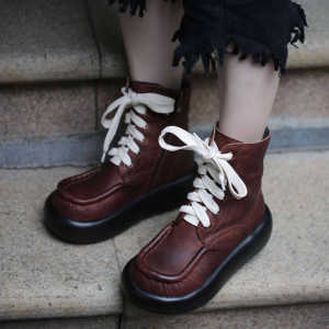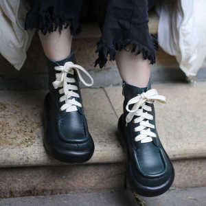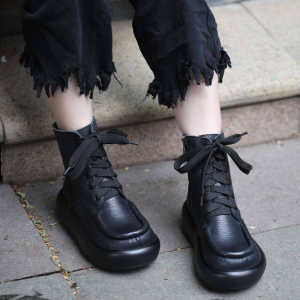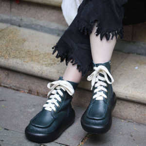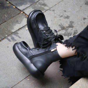 广州头层牛皮手工制作自然皱马丁女靴666-39