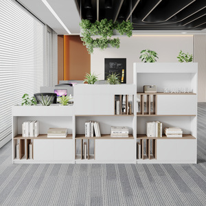 简约办公室多层木质隔断柜屏风文件落地展示柜装饰花槽柜置物架