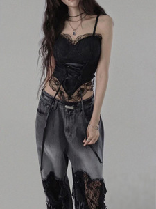 蕾丝破洞牛仔裤女