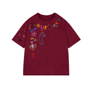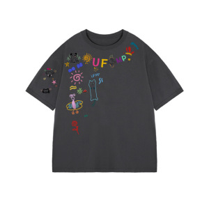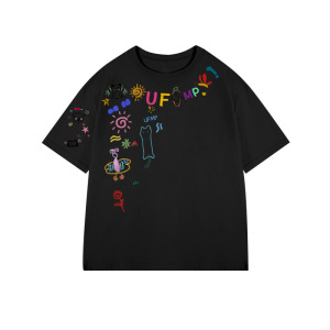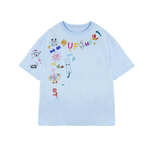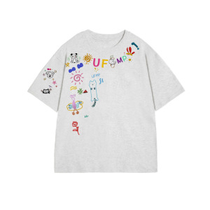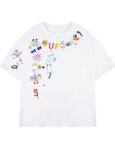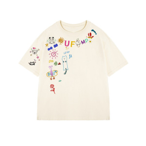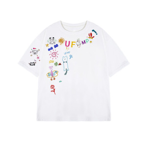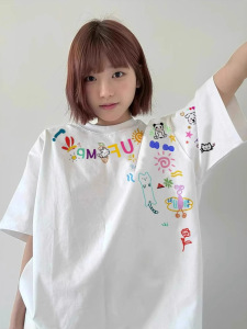 趣味卡通涂鸦白色短袖t恤女夏季2025新款oversize设计感小众上衣