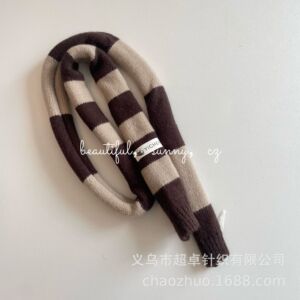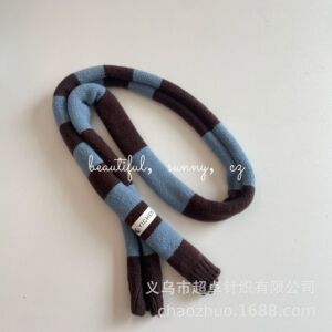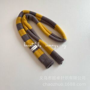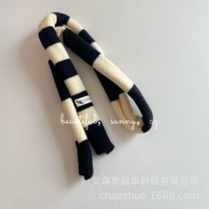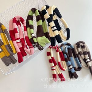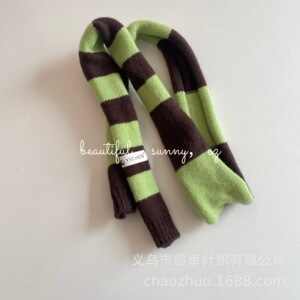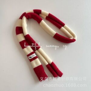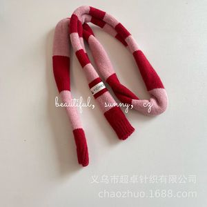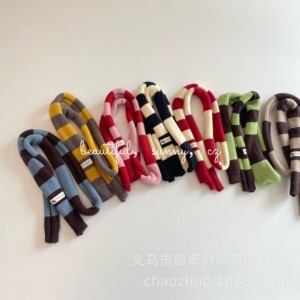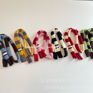 小众设计感氛围感四季搭配针织撞色腊肠围巾儿童白标毛线细窄直条