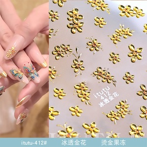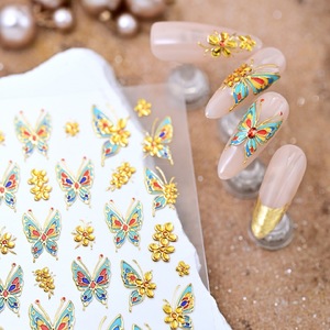 新中式国风美甲贴纸网红爆款敦煌蝶影法式花朵蝴蝶浮雕立体贴纸