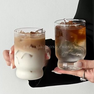 简约冰美式拿铁咖啡杯ins风创意高颜值玻璃气泡水杯冷饮杯果汁杯