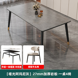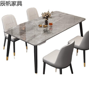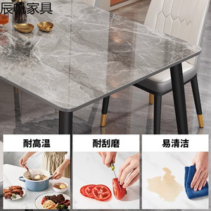 岩板餐桌轻奢家用现代简约小户型简易客厅桌子长方形餐桌