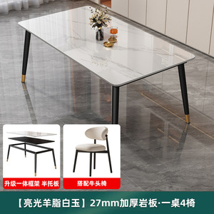 【亮光羊脂白玉】单桌岩板27mm+牛头椅*4