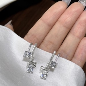 韩系爆闪方糖锆石蝴蝶结珍珠耳环高级感轻奢气质耳饰甜美优雅耳钉
