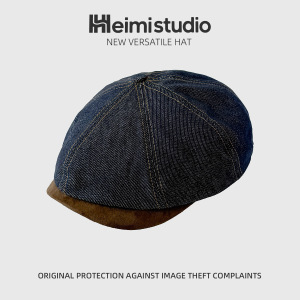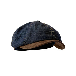批发25年早秋新款水洗做旧复古牛仔帽拼接小沿日系文艺休闲画家帽