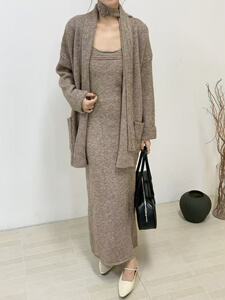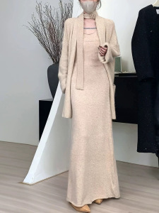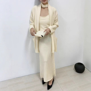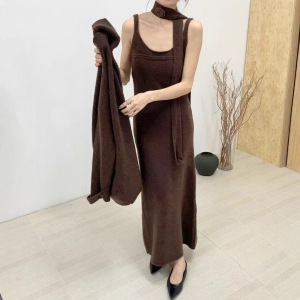 秋季新款韩版修身针织吊带连衣裙慵懒风宽松气质毛衣外套两件套女