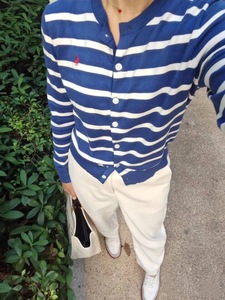 原标可扫码/拉夫条纹圆领基础小马刺绣针织开衫长袖薄款修身上衣