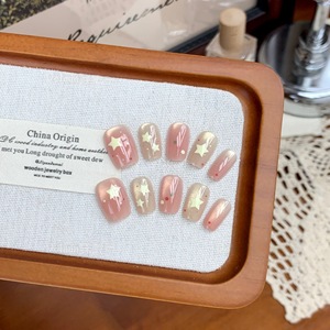 夏日五角星穿戴甲猫眼彩色可爱风甜美星星短方甲可拆卸美甲贴卡通