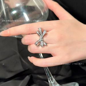 格家高版本满钻立体蝴蝶结戒指个性轻奢高级感小众韩版时尚食指戒
