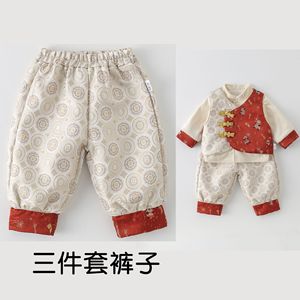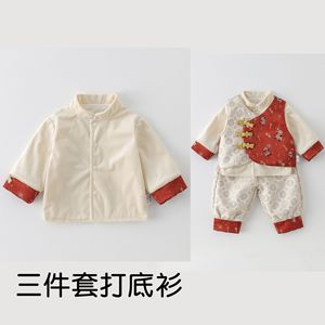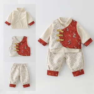 儿童国风套装春秋男宝宝新中式百天周岁礼服婴幼儿熊猫马甲三件套