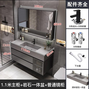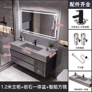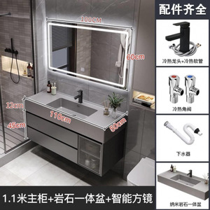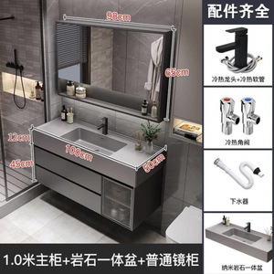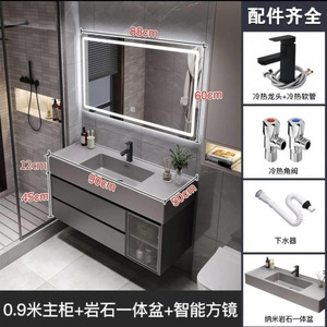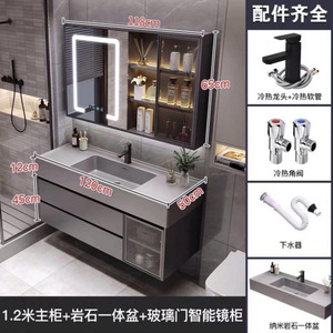 轻奢浴室柜现代简约卫生间岩石一体洗脸盆洗手组合洗漱台镜套装