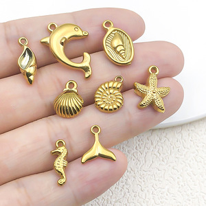 不锈钢真空海洋生物金色海星海马海螺吊坠diy项链手链饰品配件