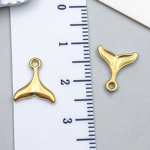 1个11x12x1.5mm孔径1.4mm真空电镀金色不锈钢海洋系列美人鱼鲸鱼尾-0.38g-T230