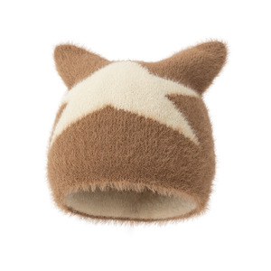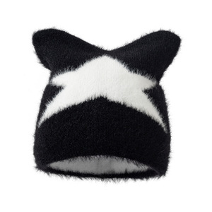 欧美猫猫耳朵包头保暖防风防寒软糯帽子批发针织帽冬季五星帽