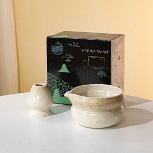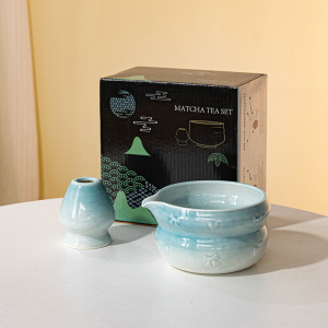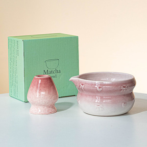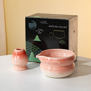 跨境专供亚马逊日式抹茶碗带嘴陶瓷茶具配件茶筅立套组日式茶道