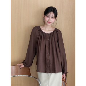 【松黎茶语】歌铭法式复古立体花朵长袖衬衣女秋季通勤上衣N454C