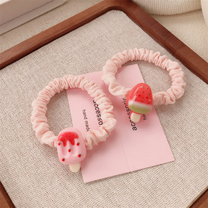 新款草莓冰淇淋雪糕发圈甜美丸子头皮筋发绳可爱橡皮筋头绳发饰