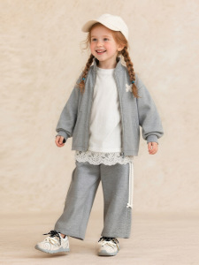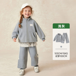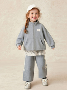 童贝童装2025年秋季新款女童裤套装时尚蕾丝蝴蝶结外套裤子两件套