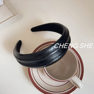 夏秋新款时尚皮质凹凸发箍高级感高颅顶头箍百搭宽边洗脸发卡头饰