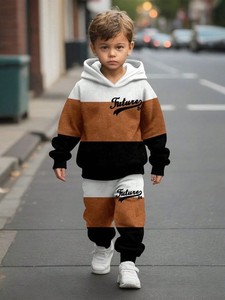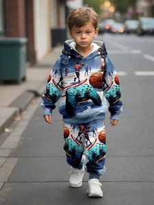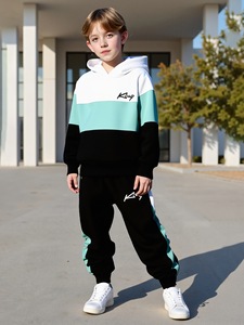 数字图案男童2025新款潮酷儿童装字母时尚休闲连帽卫衣两件套