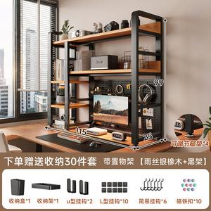 【加粗钢架】雨丝银橡木色+黑架115*25*99cm 双层带置物架带配件赠30件套+金属脚垫