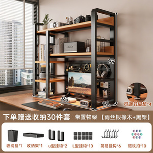【加粗钢架】雨丝银橡木色+黑架95*25*99cm 双层带置物架带配件赠30件套+金属脚垫