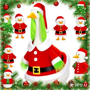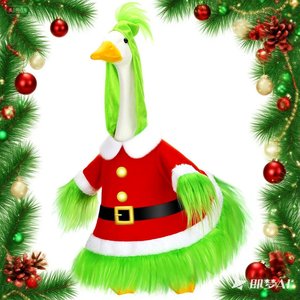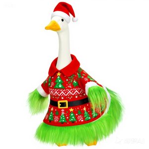 新圣诞节门廊鹅仿真白鹅衣服立体圣诞人装扮服饰帽子套装帽子跨境