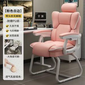 弓形C电脑椅-白粉边+头枕
