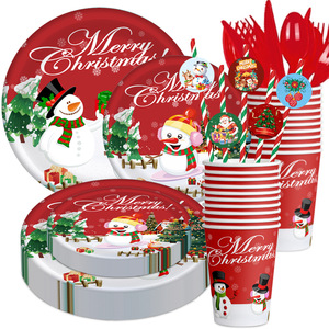 2025跨境圣诞节派对聚会装饰圣诞老人纸杯纸盘刀叉勺吸管套装批发