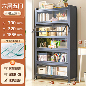 玻璃门书柜家用钢艺翻盖柜落地防尘收纳柜儿童书架手办饰品展示柜