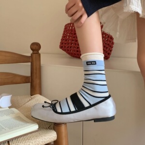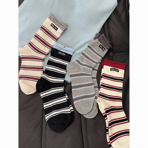 百搭袜子女春夏韩系ins潮中筒袜撞色拼接堆堆袜复古条纹袜学院风