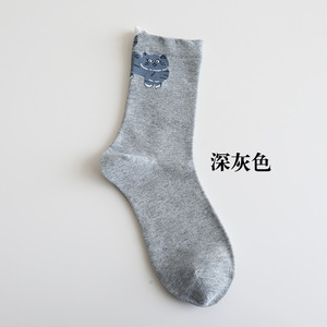 港维斯秋冬可爱搞怪猫卡通袜子女百搭棉透气吸汗少女中筒袜子批发