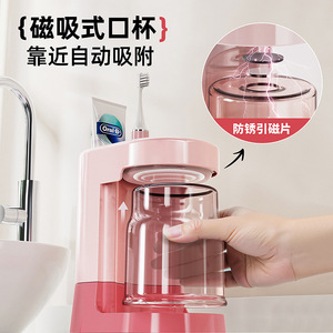 磁吸牙刷漱口杯收纳置物架学生宿舍壁挂免打孔卫生间洗漱牙具收纳