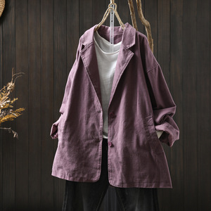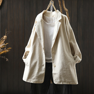 韩系慵懒松弛感外套2025女秋新款西装领两粒扣中长款复古西装外套